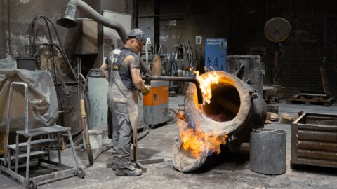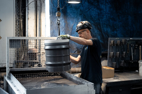 Die Herstellung beginnt mit der exakt abgestimmten Rohstoffmischung – bestehend aus Roheisen, Stahlschrott und eigenem Kreislaufmaterial. Diese Kombination ermöglicht nicht nur hohe Qualität, sondern auch einen ressourcenschonenden Gießprozess. Zwei leistungsfähige Induktions-Tiegelöfen sorgen für eine flexible und energieeffiziente Schmelzleistung – für Projekte, bei denen Liefertreue, Präzision und Wiederholgenauigkeit gefragt sind.