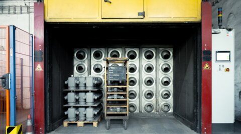 Nach dem Auskühlen werden die Gussteile in unserer Agtos Strahlanlage gründlich von allen Produktionsrückständen befreit. Anschließend erfolgt die Trennung von dem Angusssystem sowie eine sorgfältige Sichtkontrolle, um die einwandfreie Qualität jedes einzelnen Teils sicherzustellen.